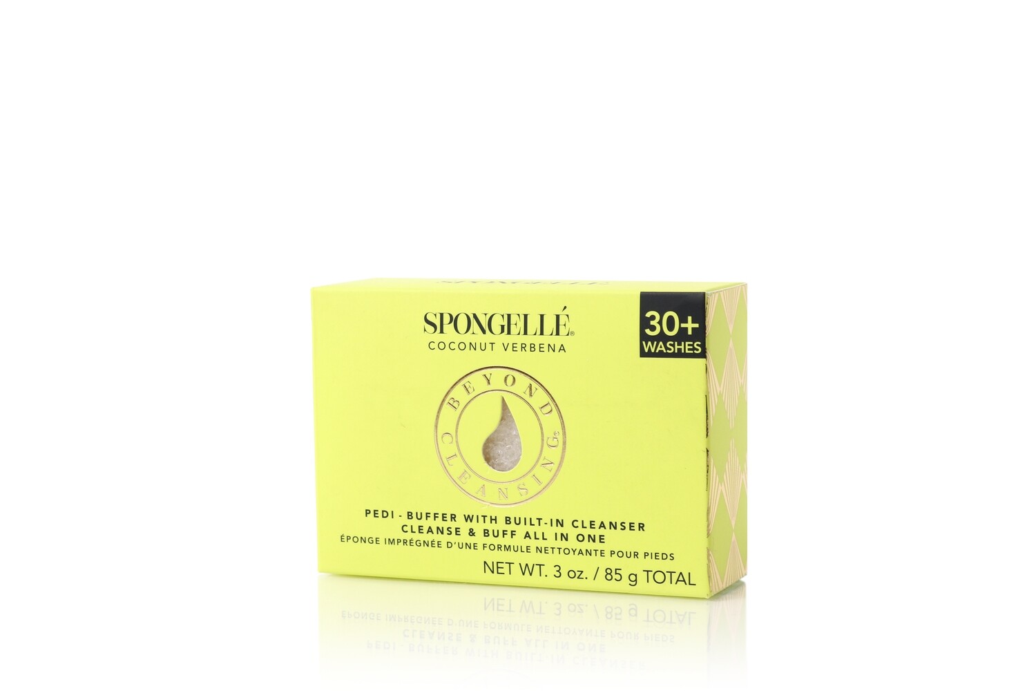 Formulated just for your feet, this buffer has a unique textured side that gently whisks away dry skin while cleansing, so feet are soft and silky. Enriched with extracts of peppermint and sea kelp to cleanse, buff and polish, Spongellés Pedi buffer is the perfect solution for tired feet. Packaged in an easy to use size for travel. Coconut Verbena scent. 30+ washes.